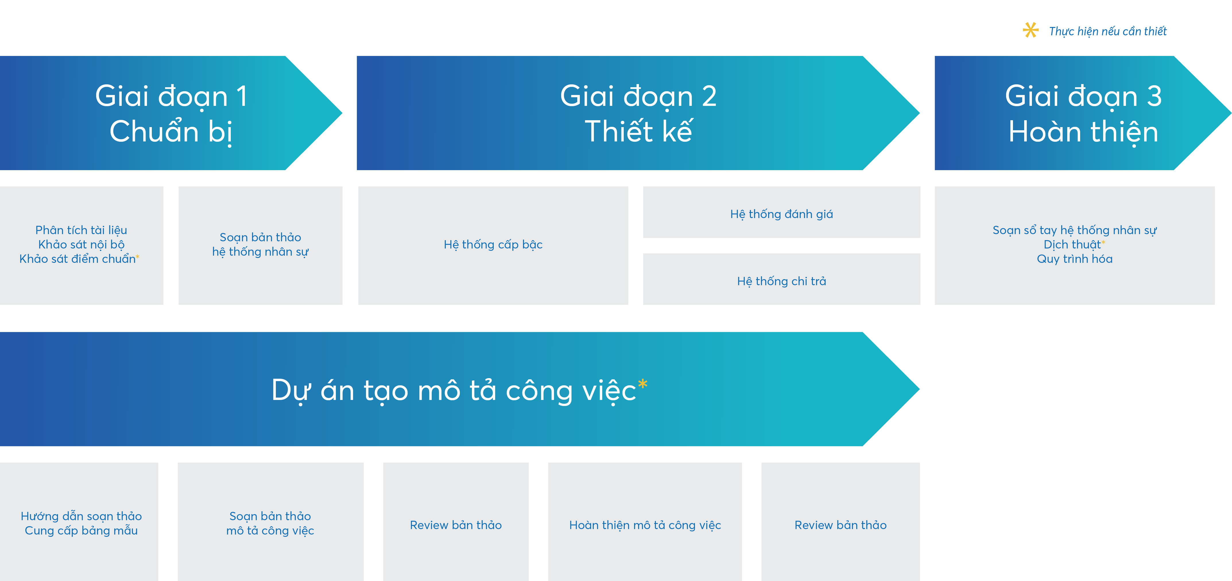 ICONIC cung cấp dịch vụ thiết kế ba hệ thống nhân sự chủ chốt: ① Hệ thống cấp bậc, ② Hệ thống đánh giá, ③ Hệ thống chi trả.